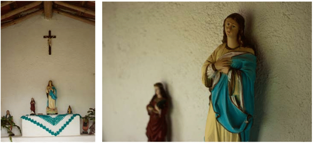 Dona Rosa, mora no bairro rural do Bom Sucesso. Em sua casa há uma capela, utilizada por ela, sua família nuclear (seu marido e filhos) e, também, pelos seus cunhados e cunhadas, que são seus vizinhos.