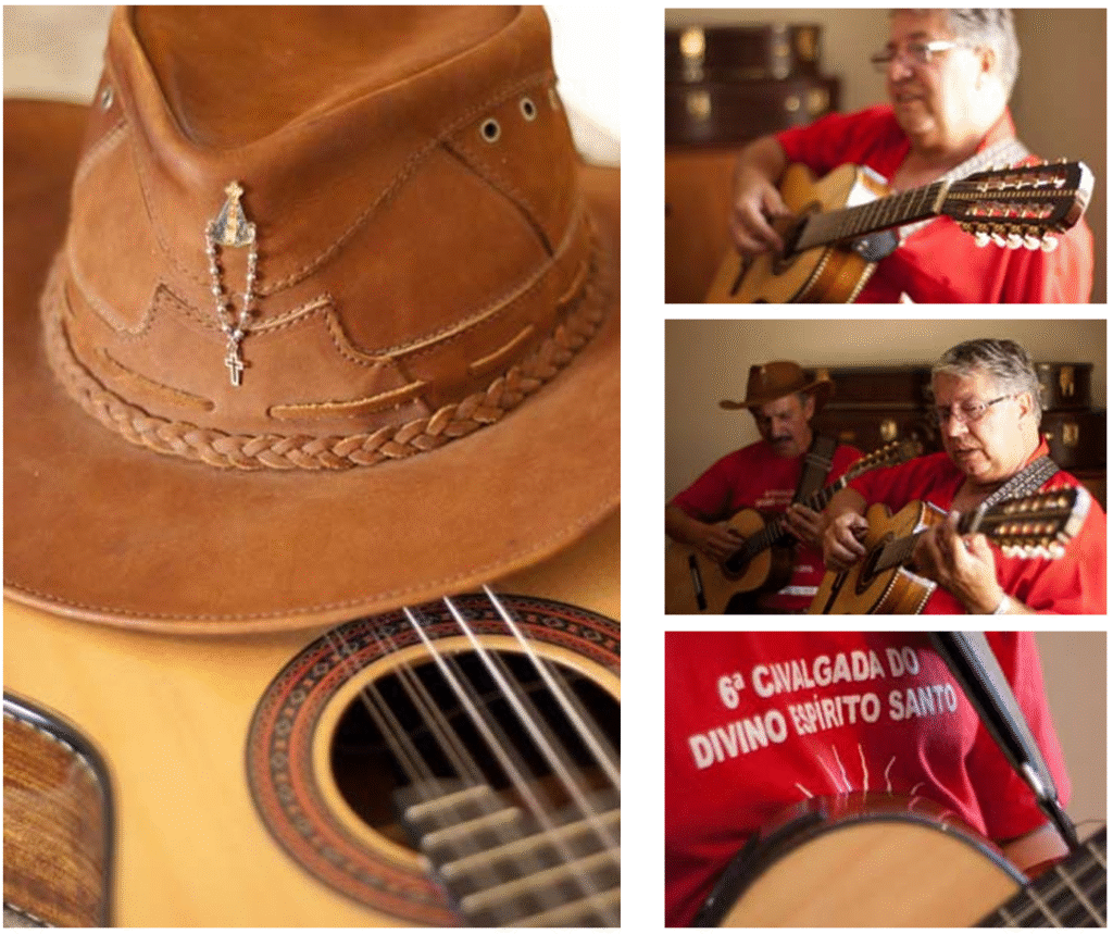 Seu Adão Raimundo, filho de Dona Maria Paião, é violeiro e participa da Orquestra de Viola Caipira Matutos da Mantiqueira. Além de colaborar com a Cavalgada do Divino Espírito Santo como violeiro, também foi um dos pousadeiros da sexta Cavalgada, promovendo o “pouso“ na Igreja de Nossa Senhora da Luz, no bairro dos Pires, próxima ao sítio onde cresceu. Como agradecimento pelo “pouso“, ganhou uma imagem do Divino (foto acima, a esquerda). Seu santo de devoção pessoal é São Gonçalo, padroeiro dos violeiros (destaque na foto de seu oratório, acima, a direita).