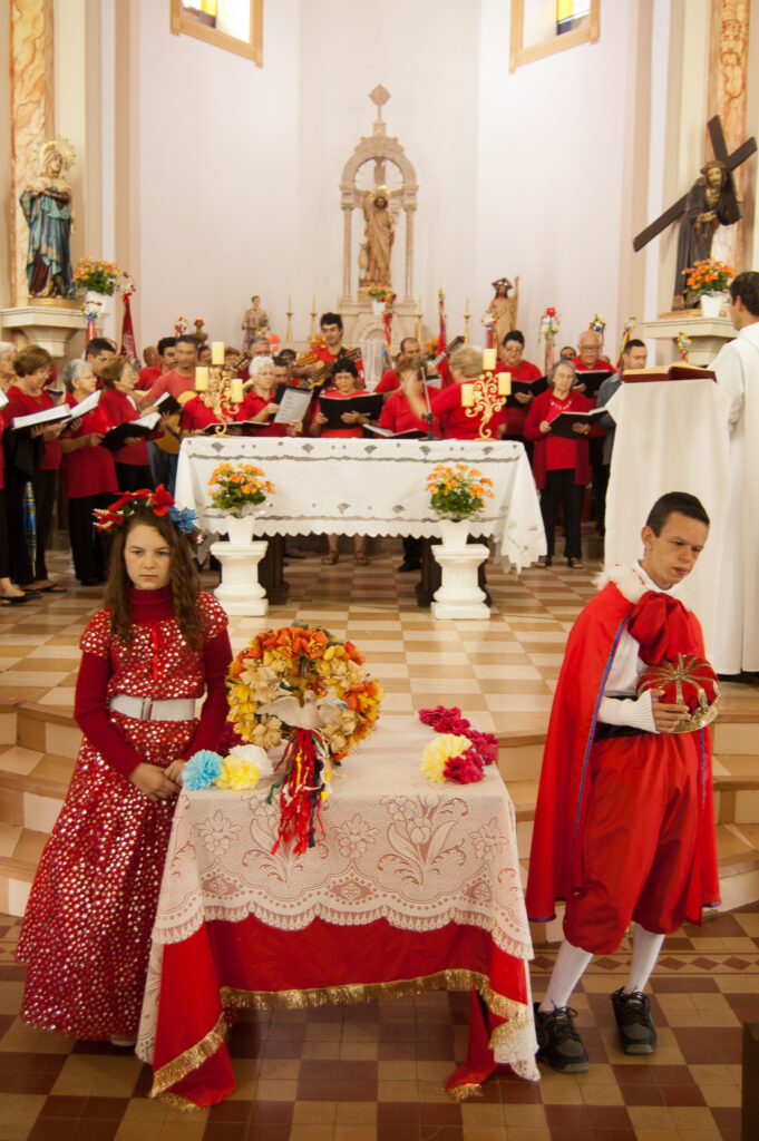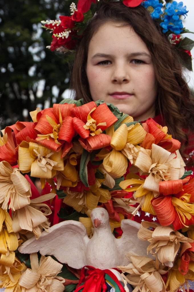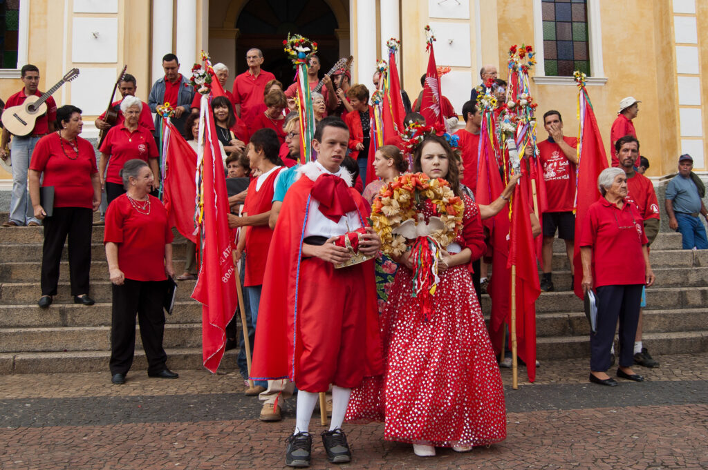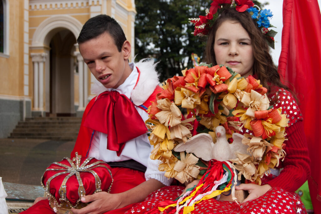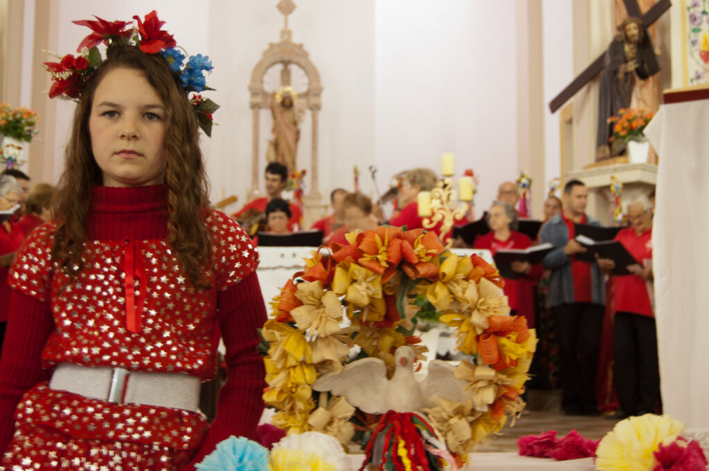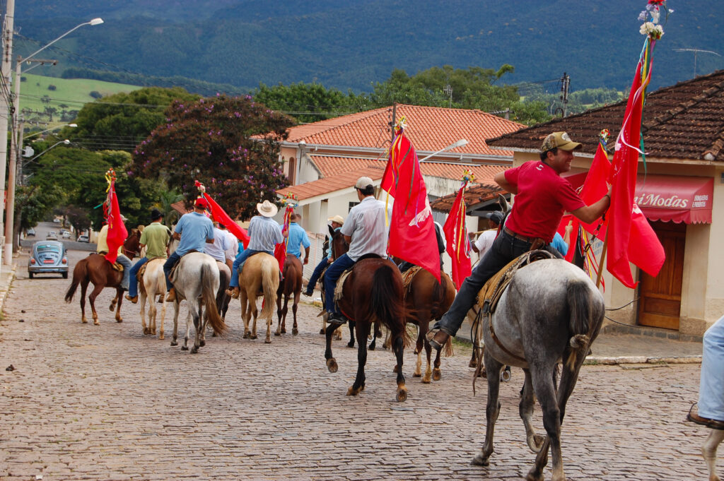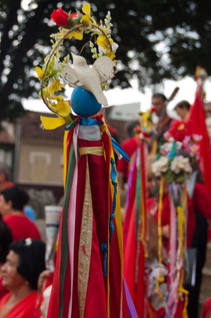 Espírito Santo e suas bandeiras vermelhas até o “pouso”. No caminho, param em casas e comércios, que se