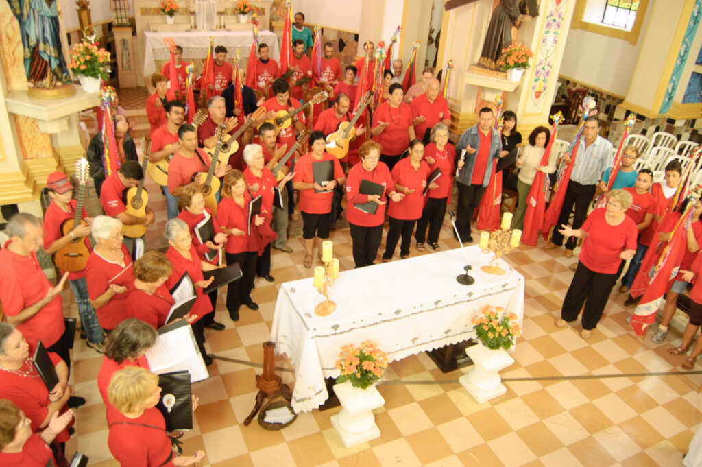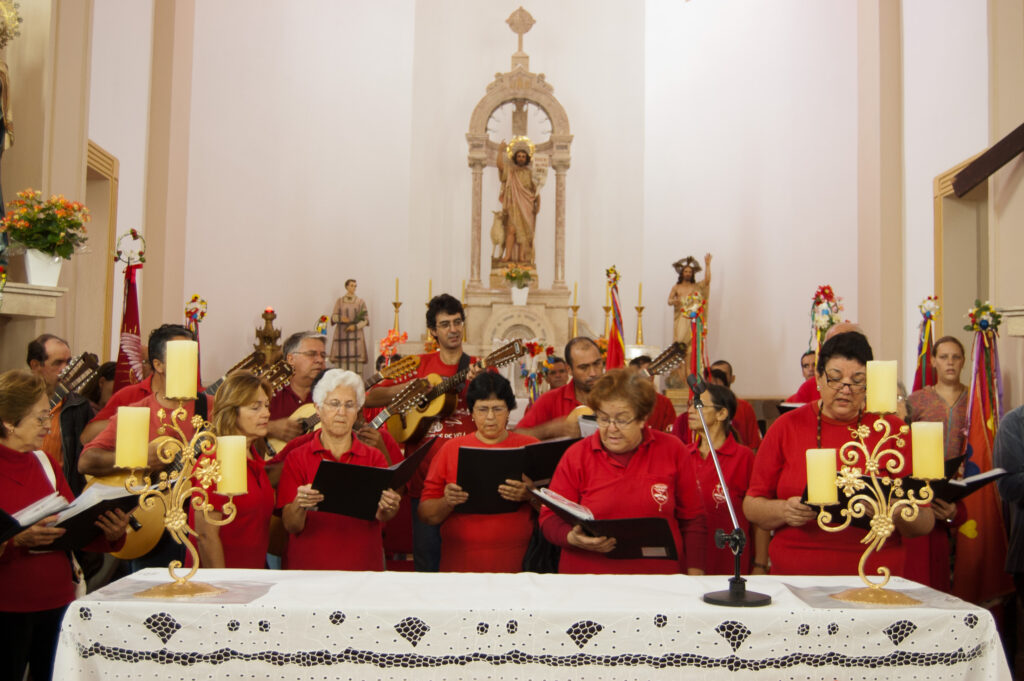 preparam para receber o séquito, onde tocam, cantam e lêem mensagens do Divino.