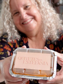 A primeira empreendedora foi a Estenfânia, uma mulher resplandecente com uma história de vida inspiradora, que trabalha com confeitaria em São Paulo.