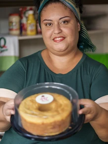 Já a segunda, foi a Tay, uma mulher batalhadora da baixada Santista, que mesmo com limitações de saúde, produz deliciosas tortas e bolos maravilhosos para vender.