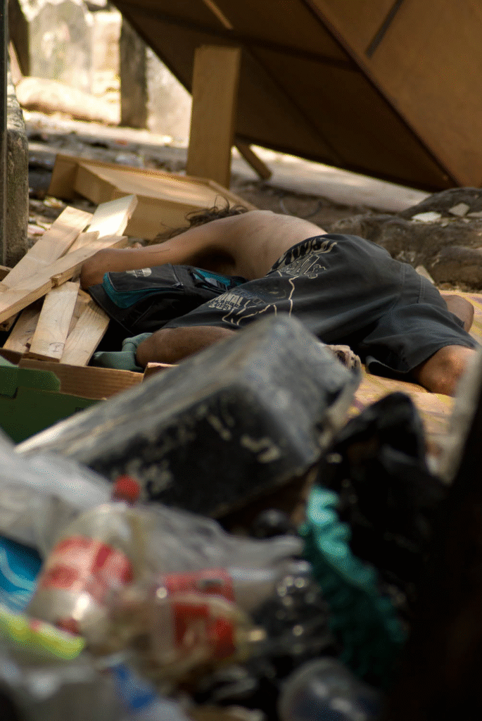 Em 2010, comecei a desenvolver esta série de fotos, que coloca em primeiro plano as imagens que muitos paulistanos se esforçam para ignorar: pessoas em situação de rua. Essa produção fotográfica é uma extensão direta das reflexões iniciadas em 2008, durante um trabalho de pesquisa para a faculdade que refletiu sobre os Moradores de Rua da Praça da Sé.